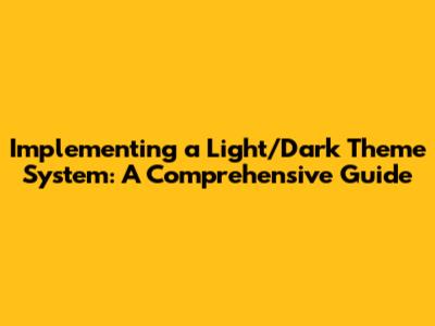 Implementing A Light/Dark Theme System: A Comprehensive Guide