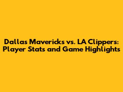 Mavericks Vs. Clippers: Player Stats And Game Highlights