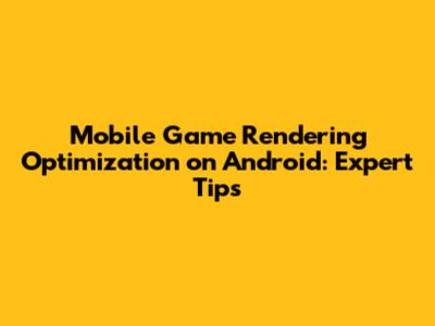 Mobile Game Rendering Optimization On Android: Expert Tips